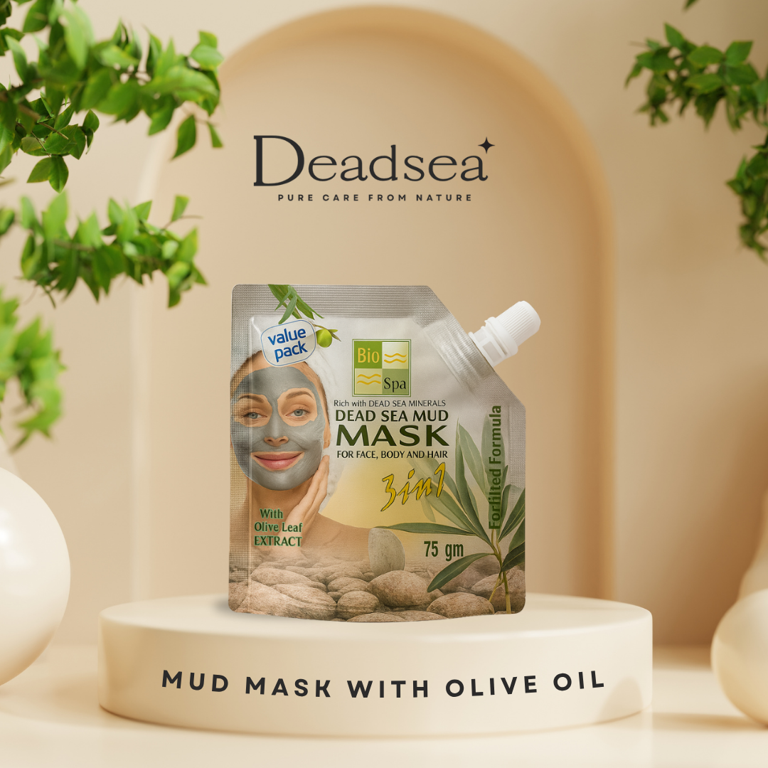 ماسك طين البحر الميت بزيت الزيتون – ترميم، تهدئة، وترطيب عميق للبشرة الحساسة